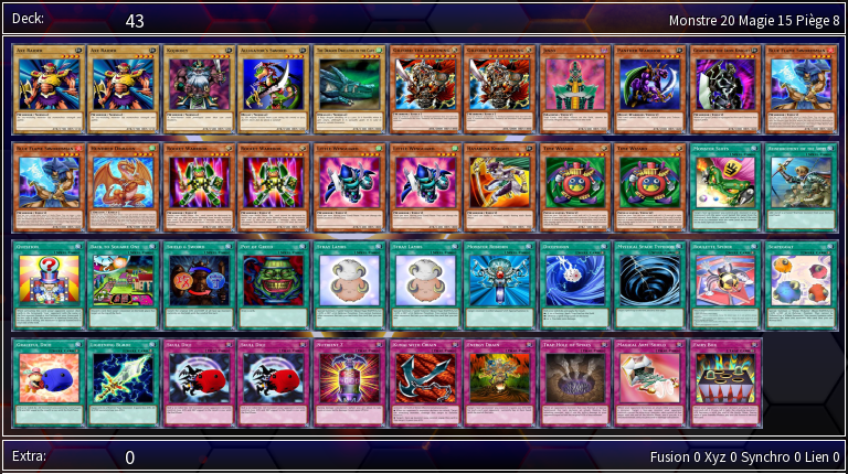 Deck de 43 cartes. Prévu pour affronter le deck rétro de Ishizu Ishtar avec 50% de winrate.
