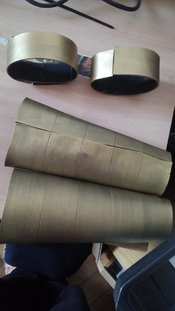 Commission pour un fan ! Des éléments de costume pour Marik Ishtar : les brassards, bracelets, la cape et bien entendu la baguette du millénium.